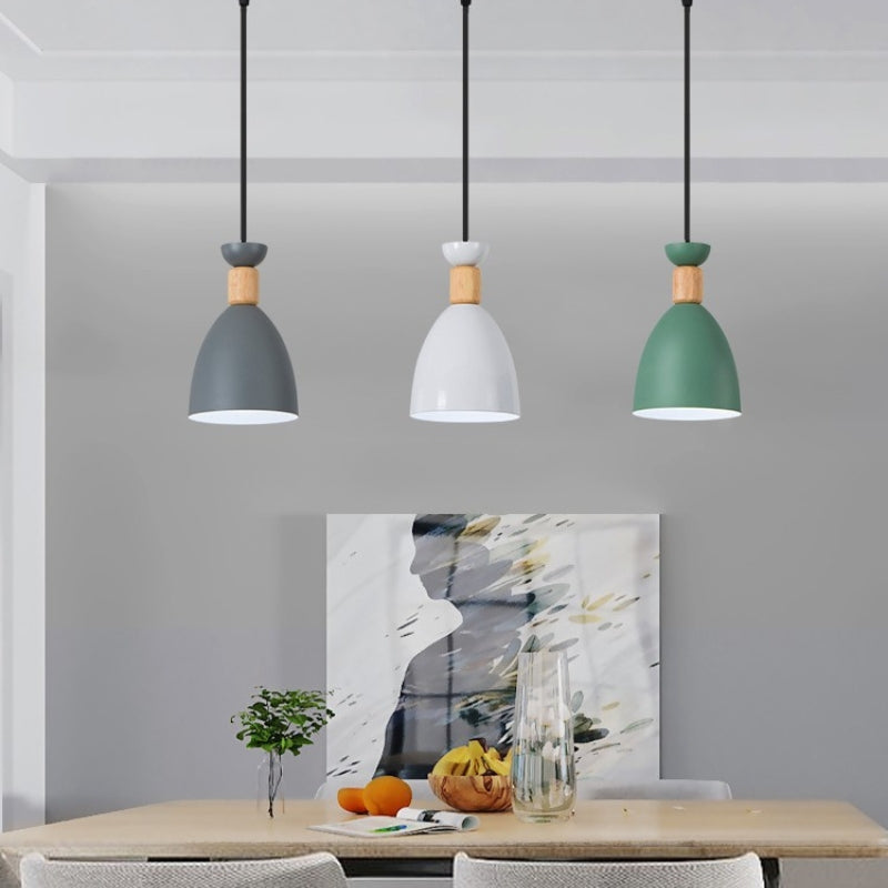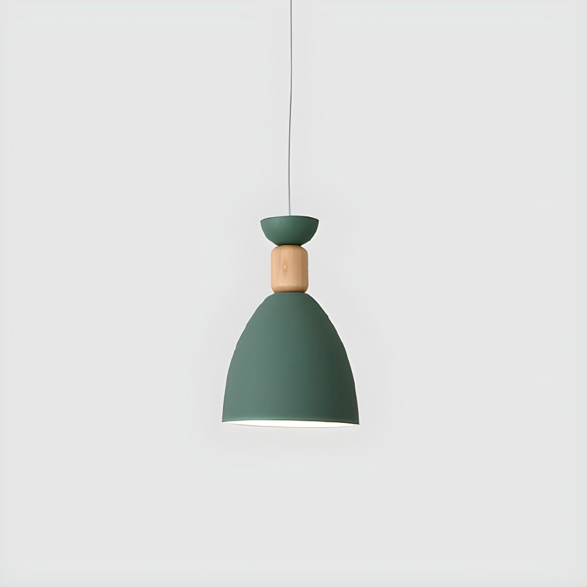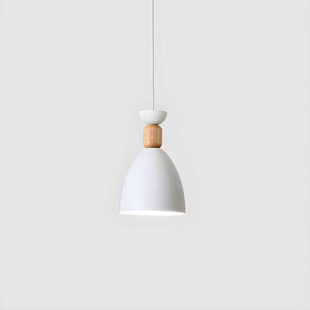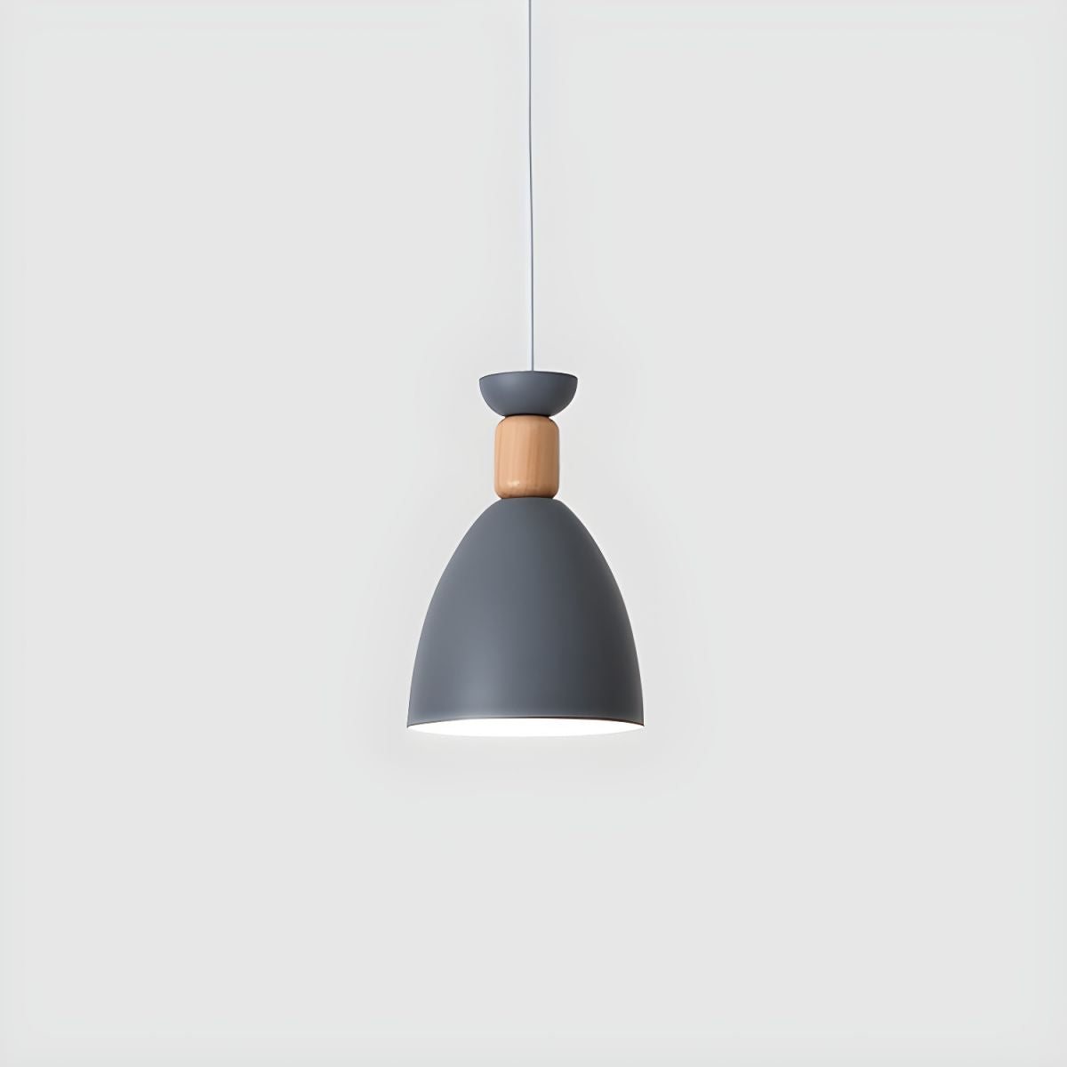 This pendant light pairs a metal shade with a natural wood accent, creating a balanced look that feels modern yet warm. The bell-shaped form directs light downward, making it suitable for bedside reading, dining areas, or focused task lighting. Its compact proportions allow it to add character without dominating the space.